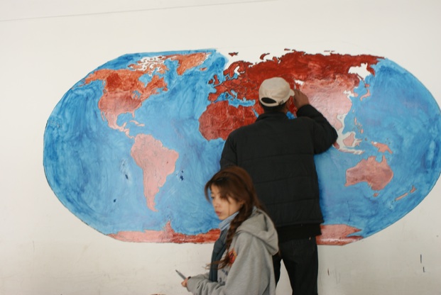 Fitzy had the weekend planned to perfection and had us all pencilled in to work in the orphanage he helps out in. We were to be there from 9 – 1. The forty of us were required to dig flower beds, plant blueberry trees, build a mosaic style car park (for one car) and paint a globe on one of the classroom walls. No mean feat if you’ve only had 4 hours of sleep!