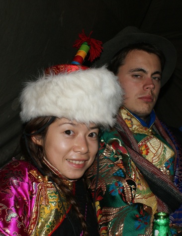 In the house Fitzy was presented with his gift from Zhou Ma’s mother - A full traditional Tibetan outfit. It was incredible. It consisted of a red silk Chinese patterned shirt, a brown yak wool knee length coat, which was lined with beautiful gold material, a silk scarf, and a leather hat. Most amazing thing of all was that she had made the whole thing. When she gave it to him, she gave the most beautiful speech that had everyone in tears, and it only lasted 30 seconds, impressive woman!