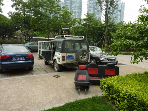 The guys arrived back from Jiuzhaigou last night in the jeep. It’s great to have it here but it needs a lot of work before we hit the road: the steering and brakes need attention; the seats need to be readjusted (so that four westerners can fit in with any degree of comfort). We need a roof rack for all the gear and a million other less important things such as speakers, seat covers, and camping gear. We’re planning to leave Chengdu this day next week so we’re going to be really busy.