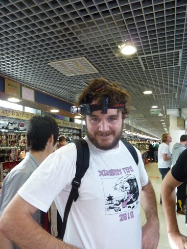 After our successful mission we had a lot of errands to run such as getting documents translated into English and Russian, buying things such as head torches, in-car cameras, clothes and other bits and bobs in preparation for hitting the road. The picture of below of Colm (with the camera attached to his head) trying to simulate in-car movement – much to the delight of all the Chinese on-lookers.