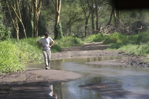 Faicho ponders over whether the lads can make it over the water in the Jeep