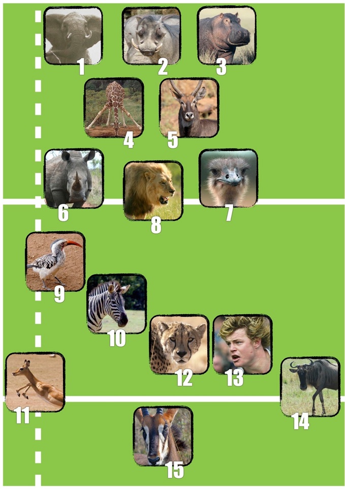 In the front row the cauliflower-eared elephant and toothy hippopotamus - quelle surprise - bracket the warthog at hooker. Previously a runner for a Rob Henderson style inside centre, the Shane Byrne mullet made his insertion here a certainty. In the thick of it, in the second row, in the engine room, in the middle of things, the giraffe’s towering lineout presence overcomes his awkward scrummaging technique and liability with ball in hand. Here he is partnered with the versatile waterbuck - comparatively small in stature but a veritable tour de force in getting around the park, getting on with it, getting it done. The back row features the punishing white rhino at blindside flanker. Weighing two tonnes and hitting rucks at 42 km/h, his power is outdone only by the lion, mauling out-halves his modus vivendi. The most controversial selection is undoubtedly the ostrich at 7. Standing at as little as 63kg, his ability to turn over loose ruck ball will go a long way in determining the wisdom of the pick.